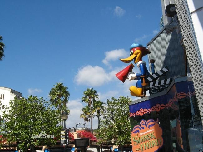 好莱坞环球影城位于市区西北郊。20世纪初,电影制片商在此发现理想的拍片自然环境,便陆续集中到此,使这一块土地逐渐成为世界闻名的影城。1908年好莱坞拍出了最早的故事片之一《基督山恩仇记》。1912年起相继建立制片公司,到1928年已形成了以派拉蒙等"八大影片公司"为首的电影企业阵容。三、四十年代是好莱坞的鼎盛时期,摄制了大量成为电影史上代表作的优秀影片,并使美国电影的影响遍及世界。