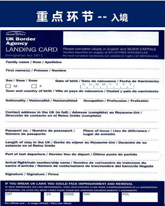 任何入境英国的非欧盟人都需要填写Landing card,在飞机上和机场都可以领取到小卡片,入境的时候要走"non-EU"的通道