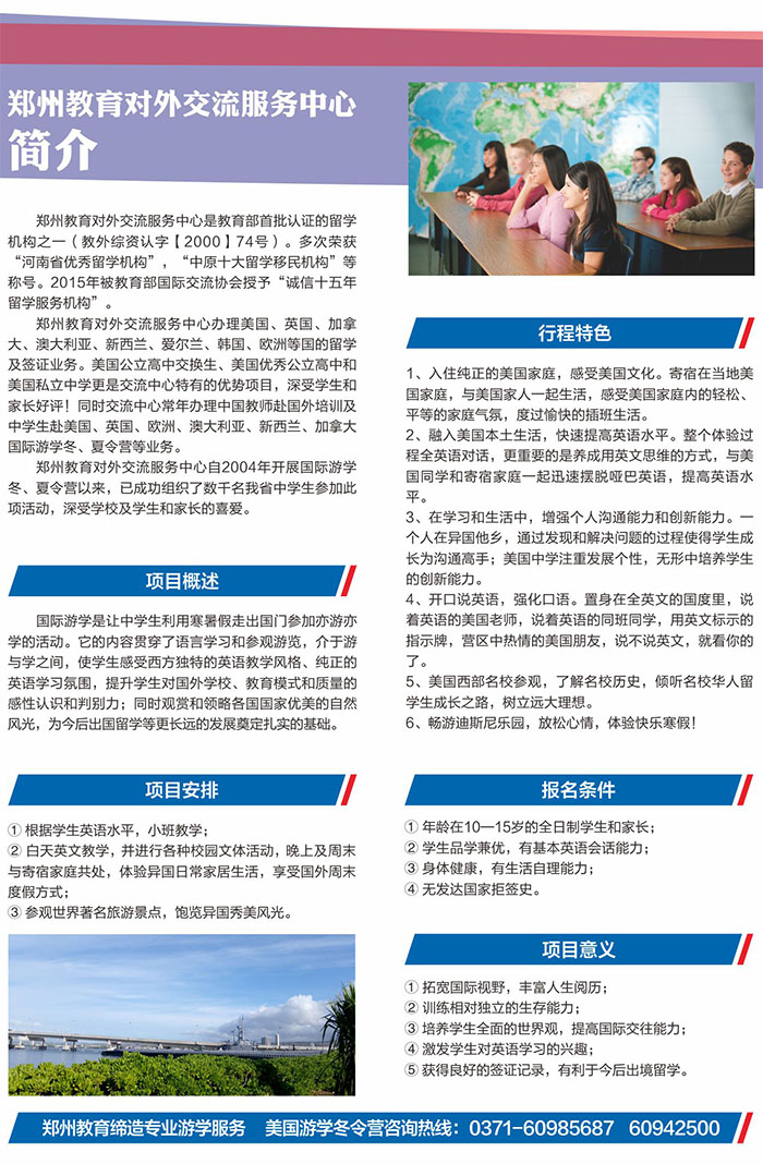 郑州/首尔/洛杉矶 郑州机场集合,搭乘国航航班前往韩国首尔,然后搭乘国际航班,前往洛杉矶。抵达后接机,晚餐后学生入住寄宿家庭,家长送酒店入住。 |